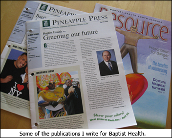 Even though I loved to read, I never thought about writing a book until I was much older. I’m not sure why. Maybe because I knew I needed a career that would pay me enough to live on. Seriously, most writers work other jobs unless they’re independently wealthy (I’m not) or are on the best-seller’s list (I wish). My first job out of college was as a reporter for a small daily newspaper in Florida. I learned a lot about writing and definitely a lot about deadlines. I also learned that I hated covering city council meetings. Oh, the politics of small towns (and big towns, too). Later, I moved to Miami and worked for the now-defunct Miami News, the afternoon paper and competitor to The Miami Herald. I found my way into public relations writing when I took a job with Baptist Hospital of Miami. That was more than 20 years ago. And guess what? I’m still writing for them, although the company, Baptist Health, has grown from one hospital with a couple of thousand employees to five hospitals and about 12,500 employees.